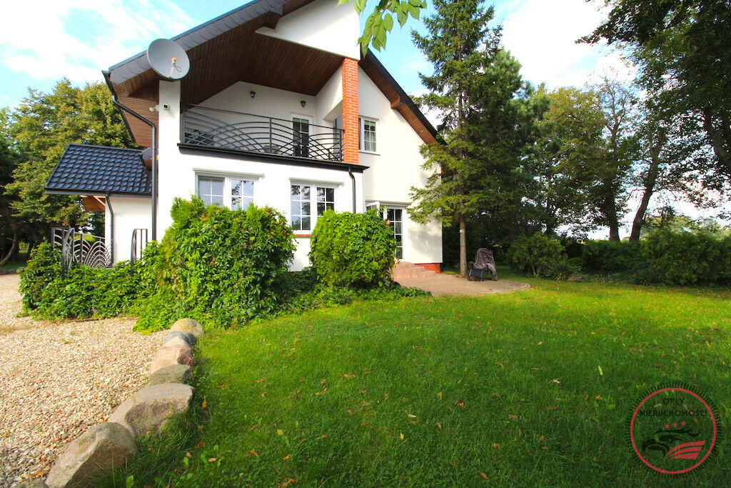 Dom o powierzchni całkowitej 201 m2 (użytkowej ok. 182 m2) znajduje się na przestronnej działce o powierzchni 3010 m2.
